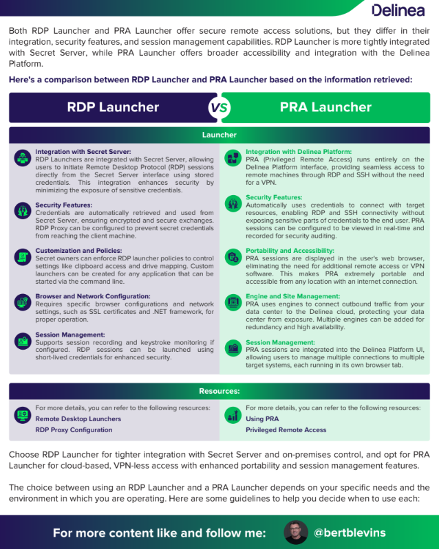 Here's a comparison between RDP Launcher and PRA Launcher based on the information retrieved: